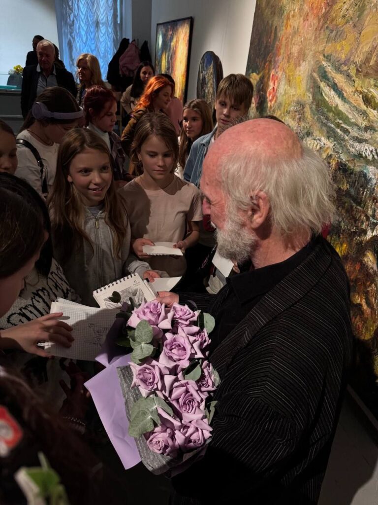Вчера ребята 6А класса, одиннадцатиклассники: Лифанова Доминика, Украйченко Софья, Мартынов Матвей вместе с педагогами Анной Борисовной Левиной и Верой Юрьевной Левиной поздравили художника Евгения Барского с открытием выставки «Рождённый под луной».