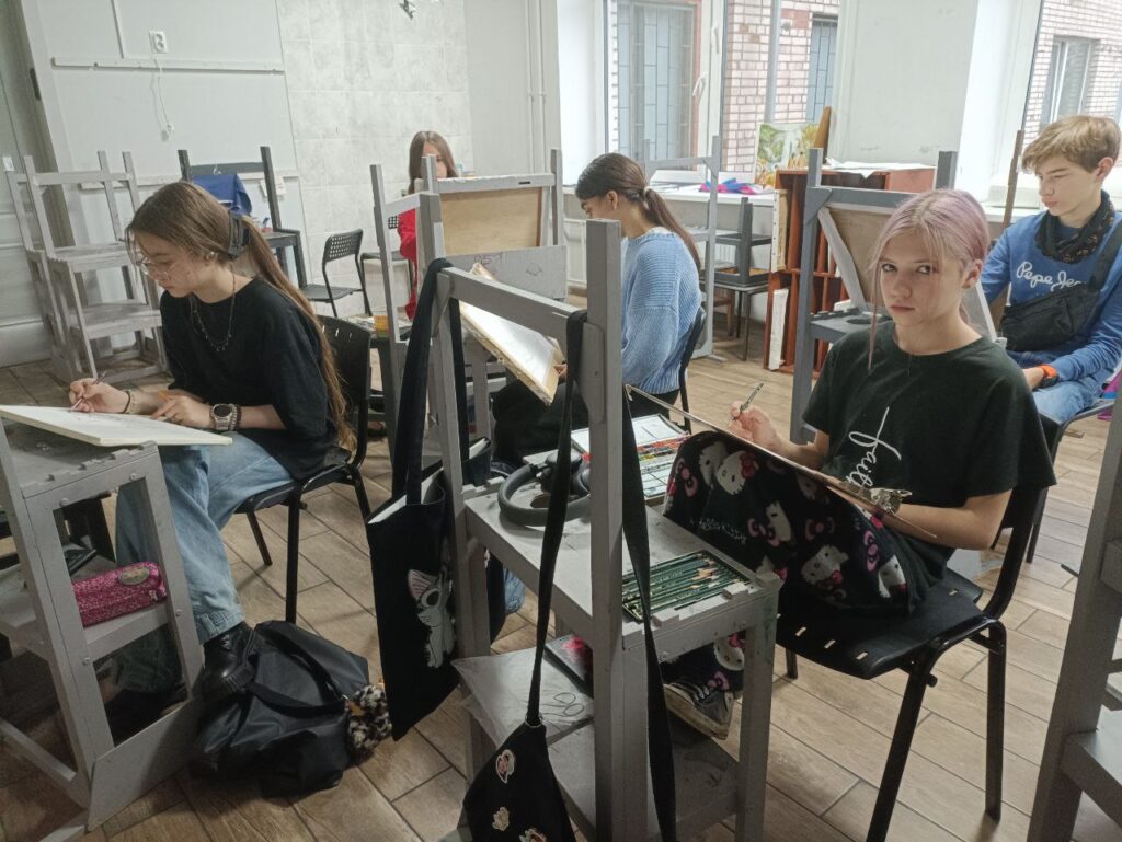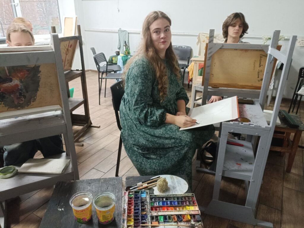 Участники работали над натюрмортом в осенней цветовой гамме, осваивая приёмы прозрачной живописи и работу с цветом.
