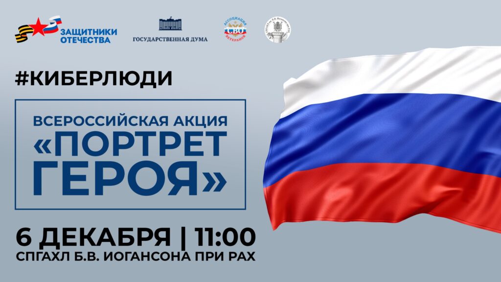 6 декабря в 11:00 в СПГАХЛ имени Б.В. Иогансона при РАХ состоится Всероссийская акция «Портрет героя», проходящая в рамках проекта #Киберлюди.