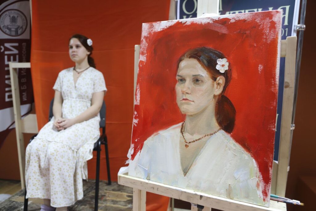 За несколько часов Олег Калитеня создал портрет Алёны. По завершении мастер-класса состоялся обход по работам учащихся, в ходе которого каждый получил индивидуальные рекомендации.