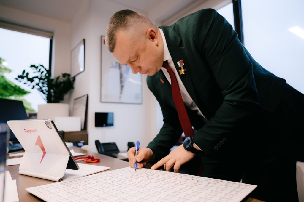 «В рамках Всероссийской акции «Портрет Героя» Виталий Пиваев написал мой портрет. 10 сентября в Тульской области приняли участие 1007 Первых из 60 регионов нашей страны. Ребята, кстати, установили Рекорд России. Они встретились с героями специальной военной операции, а потом написали их портреты.