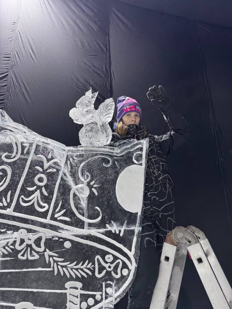 Ученик 6 «Б» класса нашей школы Семён Зверев, под руководством папы помогал в создании скульптурной композиции «Рождественская Карусель».