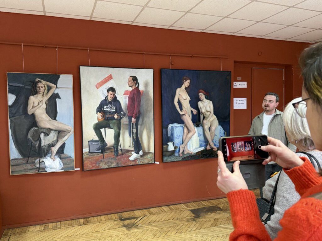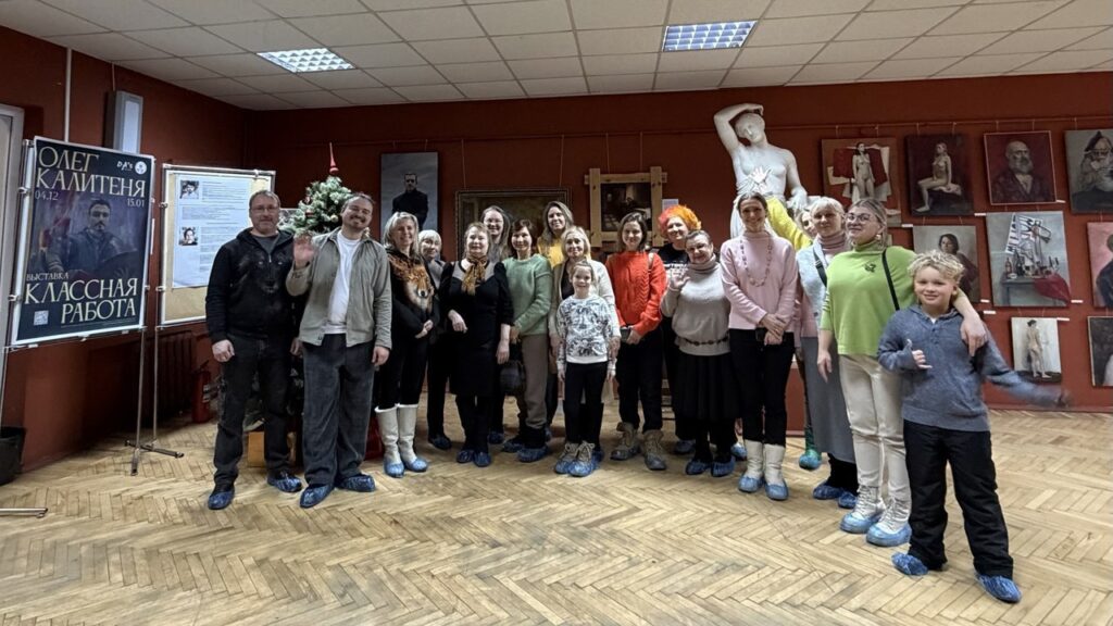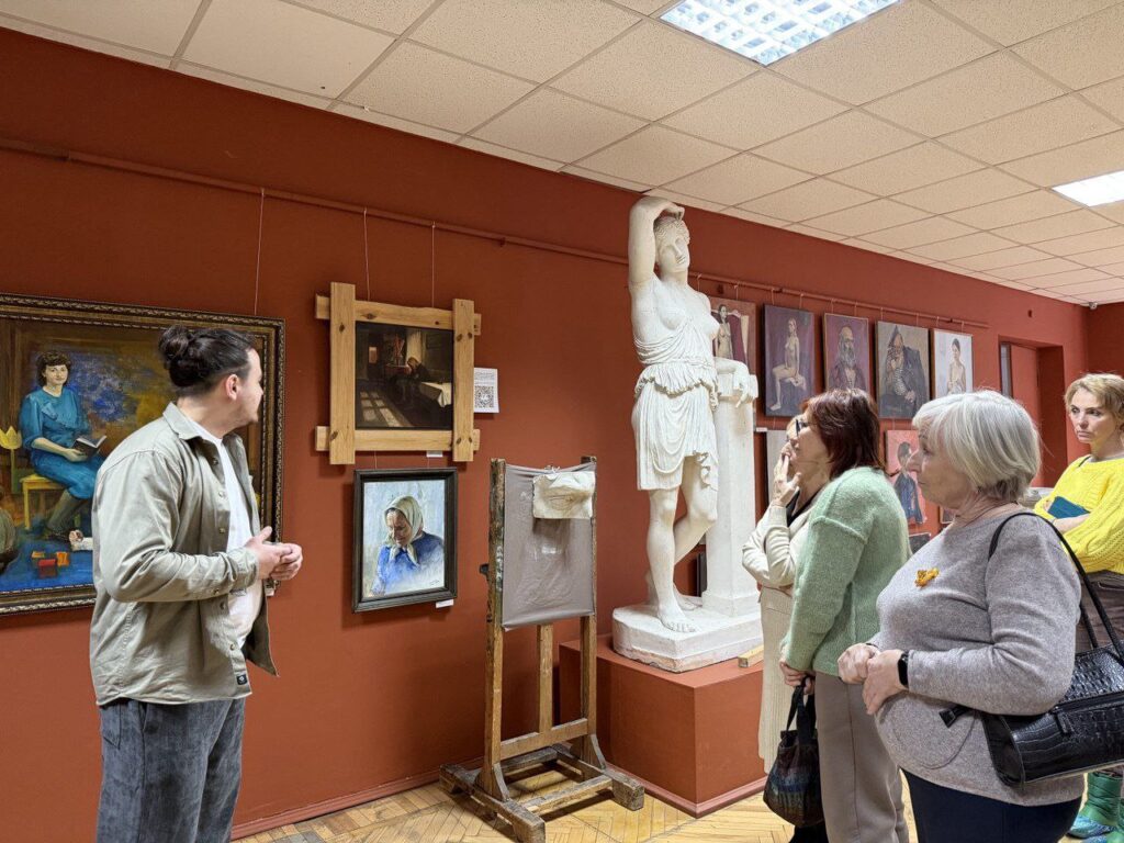 Участники экскурсии смогли увидеть выставку изнутри, услышать историю создания работ и задать автору вопросы.