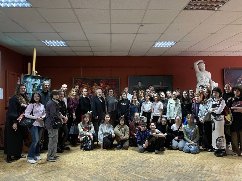 На открытии выставки присутствовали Иван Григорьевич Уралов – художник- монументалист, профессор факультета искусств СПбГУ, схшатик 1967 года выпуска – и команда преподавателей отделения Станковой живописи СПбГУ