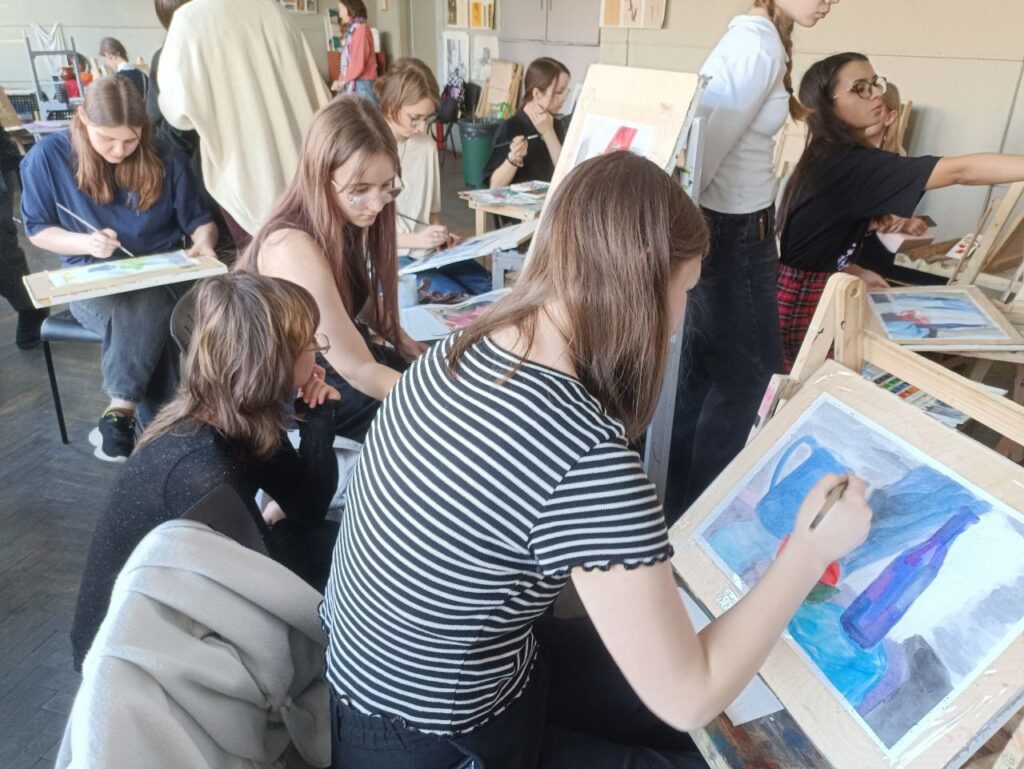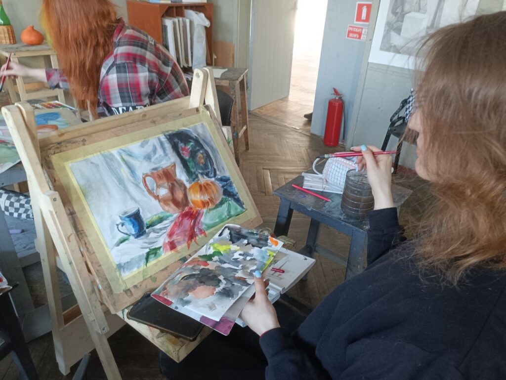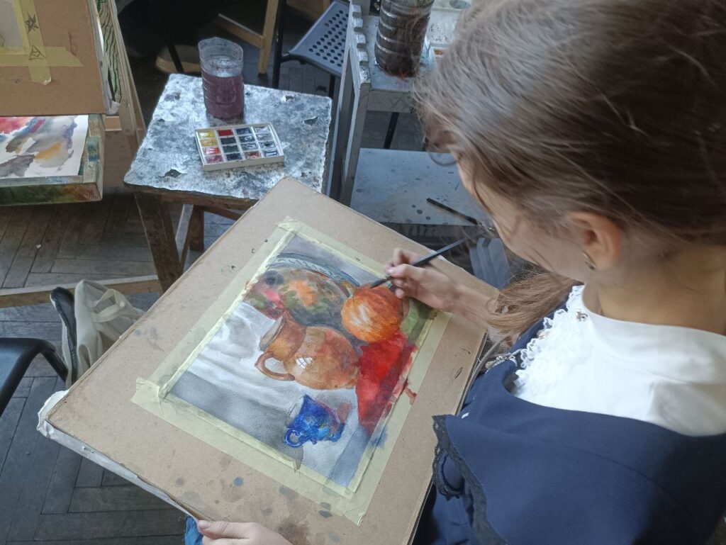 11 марта в рамках VIII Петербургской Биеннале «БУКВА.СЛОВО.КНИГА-2026. Многоликий Петербург» в нашем лицее прошёл мастер-класс для ребят из школы – интерната N2 ребята в месте с Еленой Васильевной Дмитриенко рисовали натюрморт акварелью.