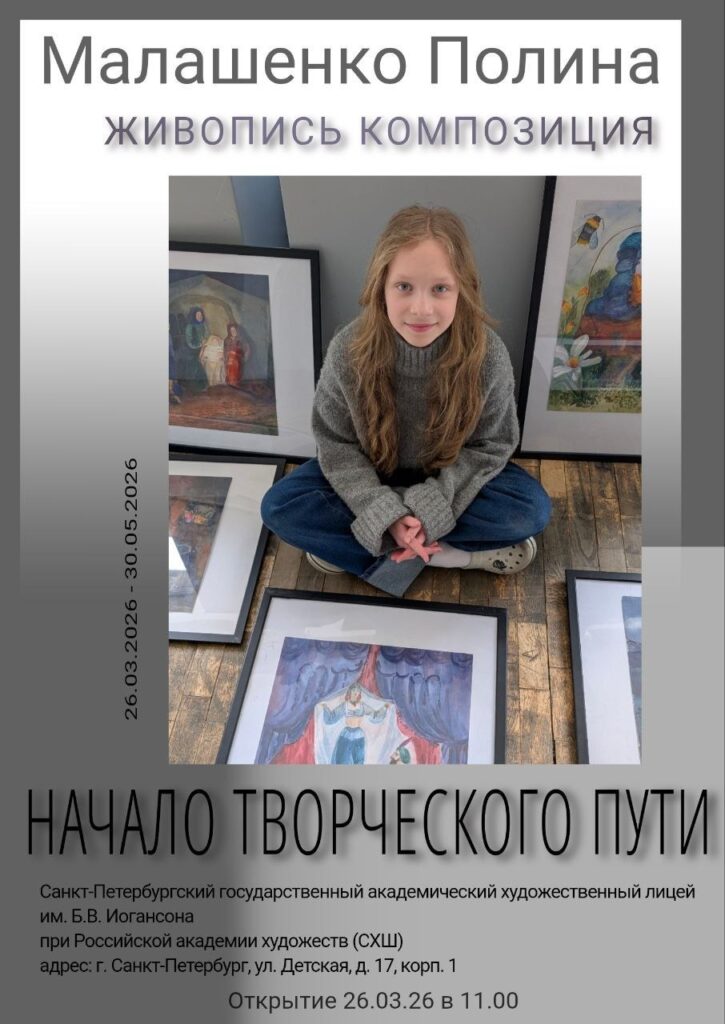 26 марта открылась персональная выставка «Начало творческого пути» юной художницы Полины Малашенко из 6А класса!