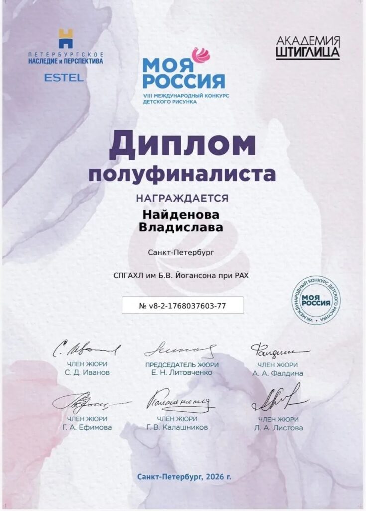 Её работа была высоко оценена жюри за выразительность и художественный уровень. Также Владислава стала полуфиналистом VIII Международного конкурса детского рисунка «Моя Россия».