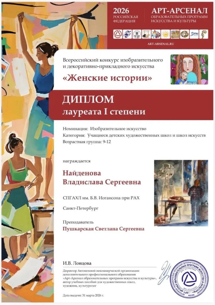 Ученица нашего лицея Владислава Найденова стала лауреатом I степени Всероссийского конкурса изобразительного искусства «Женские истории».