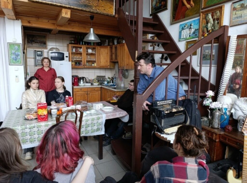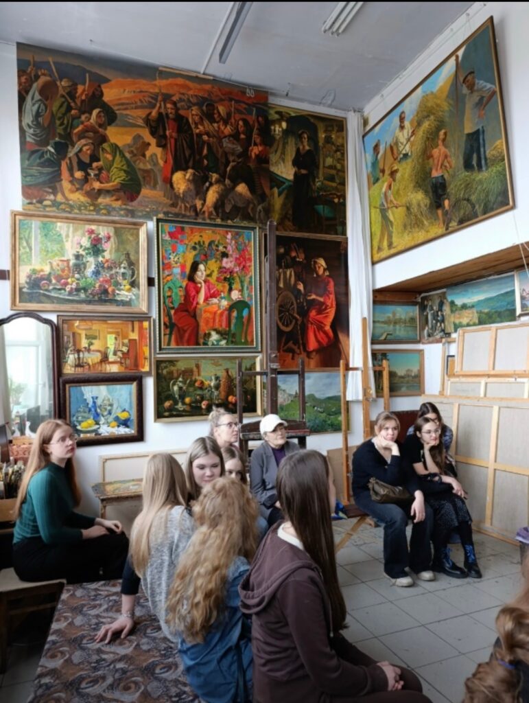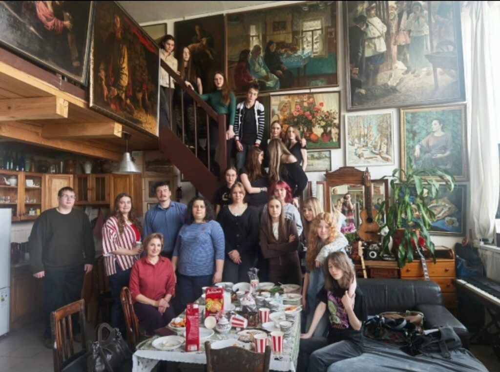 14 апреля , 8А класс СПО , вместе с педагогами Пушкарской С. С. и Шеляпиной С. Н. были в гостях у художника и преподавателя рисунка мастерской Песикова РАХ им. Репина Овчаренко Ильи Валерьевича.