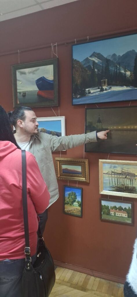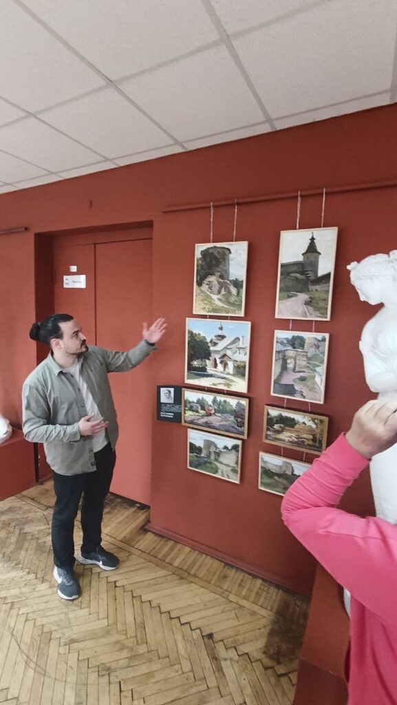 26 апреля куратор выставки «Пейзаж должен быть портрет» Олег Калитеня провёл экскурсию для гостей Лицея по представленной экспозиции. Рассказал о концепции выставки, в чём смысл такого загадочного названия и познакомил с творчеством каждого из представленных авторов.